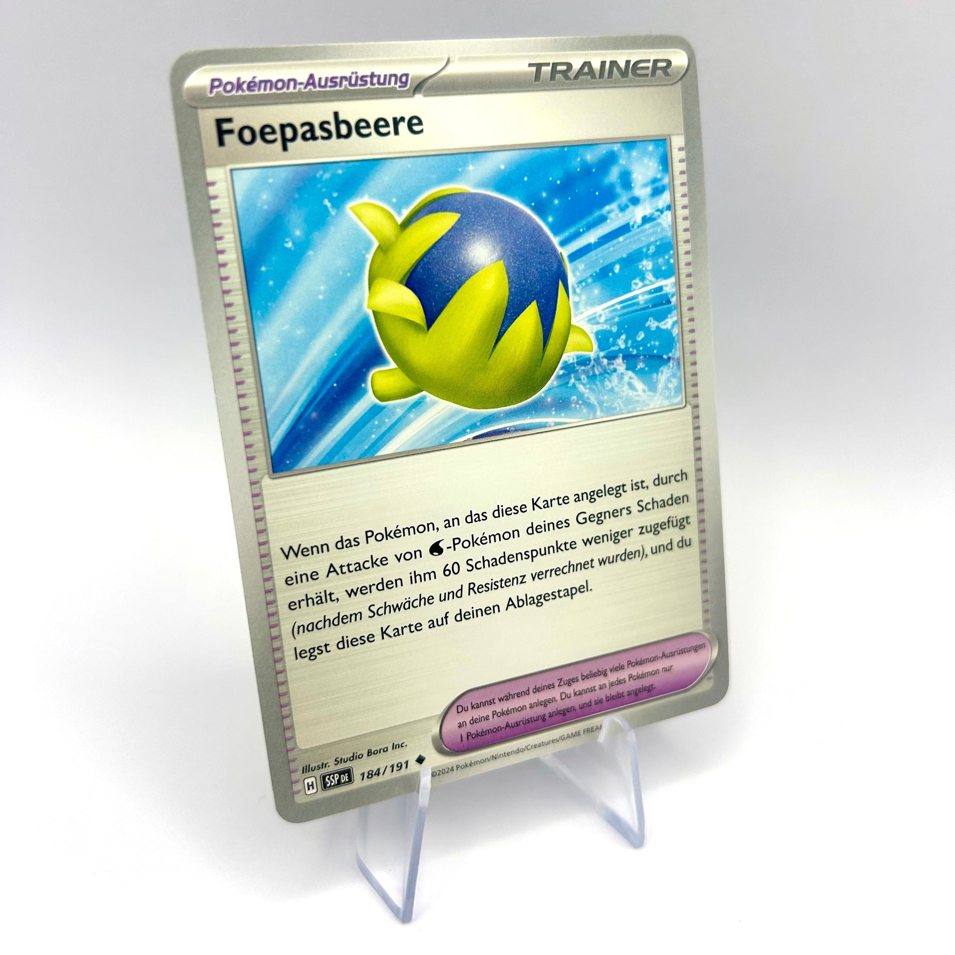 Die Foepasbeere-Karte aus der Erweiterung Stürmische Funken (Karten-Nr. 184/191) ist ein schöner Bestandteil der Karmesin & Purpur-Reihe. In deutscher Sprachversion eignet sie sich ideal zum Sammeln, Spielen oder Tauschen und rundet jede Sammlung stilvoll ab.